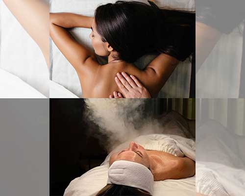 El masaje facial con aceite de rosa relaja y nutre la piel para que luzca luminosa y radiante. La mascarilla facial absorbe las toxinas de la contaminación, rejuveneciendo la piel. El vapor de ozono facial (ozono) e s un método rejuvenecedor que utiliza una máquina para liberar vapor sobre la piel y abrir los poros, permitiendo que la piel absorba mejor los nutrientes, ayudándola a lucir radiante, hidratada, luminosa y con una sensación de relajación.